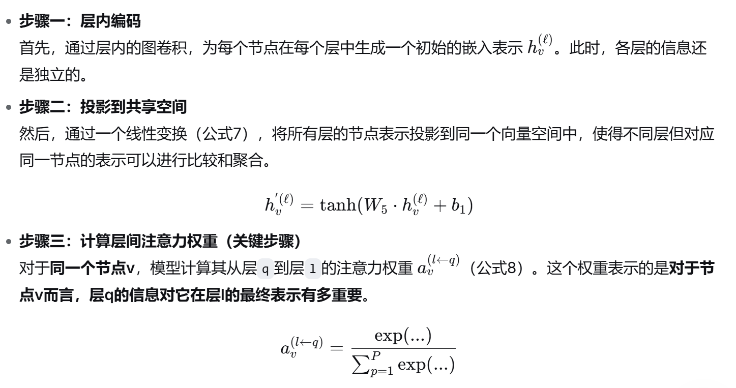 h_v²= 节点v在层2的表示(基于层2的邻接关系)3. 层间注意力计算(关键步骤)