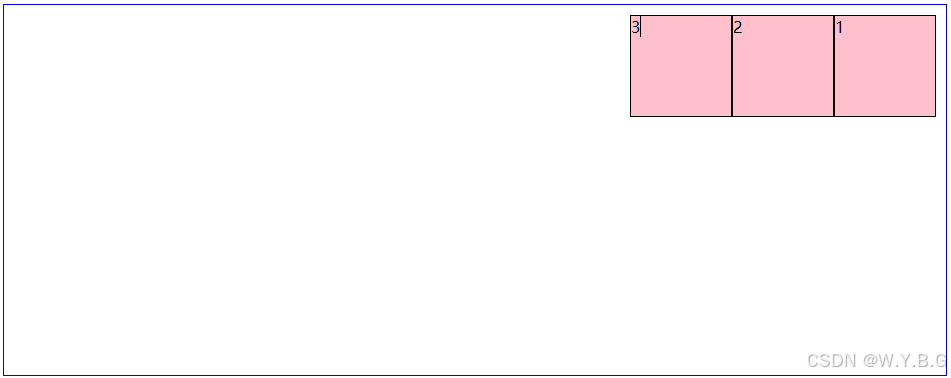 | row-reverse | 子元素沿水平主轴反向排列(从右到左) | C B A (反向横向排列) | .container{flex-direction:row-reverse;} | ![]() |