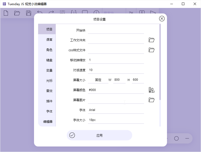 功能:一款无需编程,通过网页即可制作互动式小说/视觉小说的工具,支持场景可视化编辑、拖拽布局、翻译多语言预览、JSON 脚本导出等。