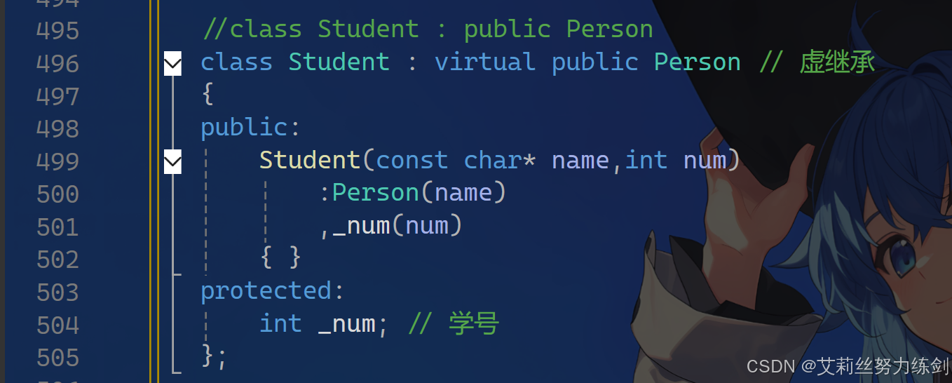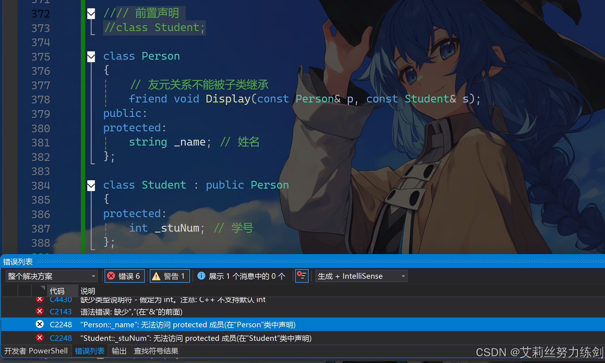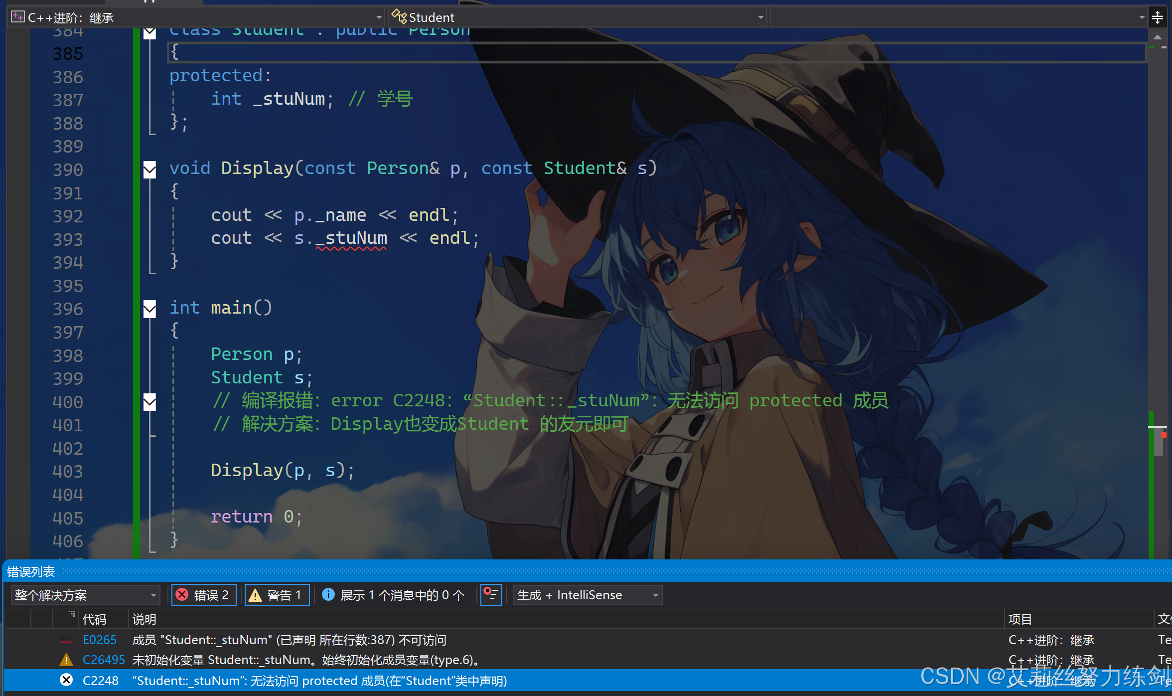 // // 编译报错:error C2248:"Student::_stuNum":无法访问 protected 成员