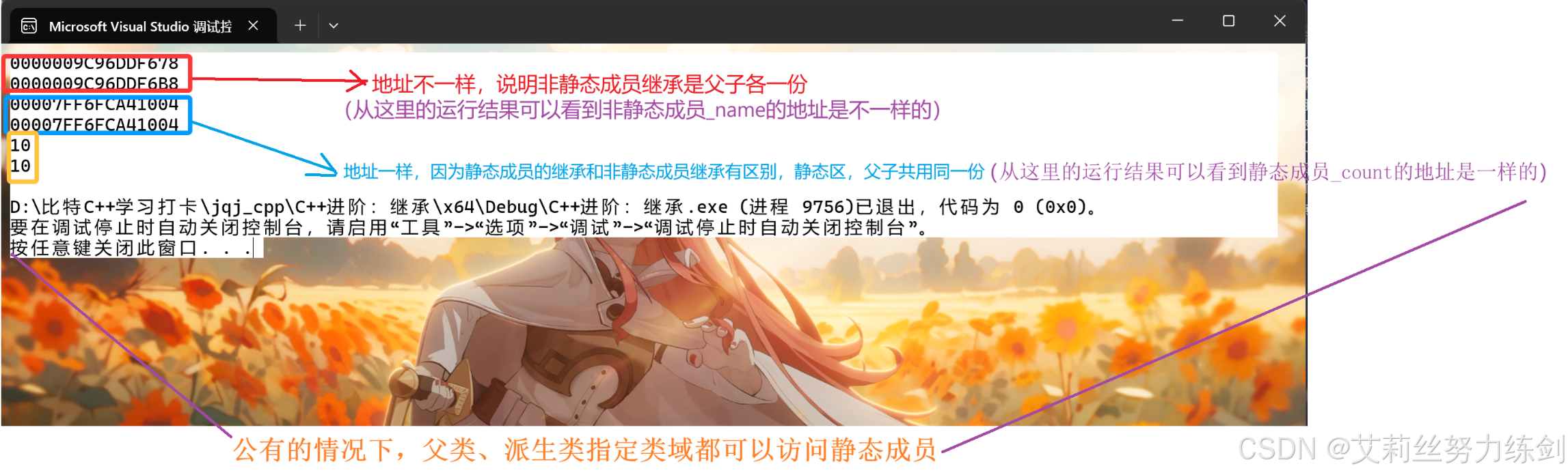 // // 说明派生类继承下来了,父类、派生类对象各有一份