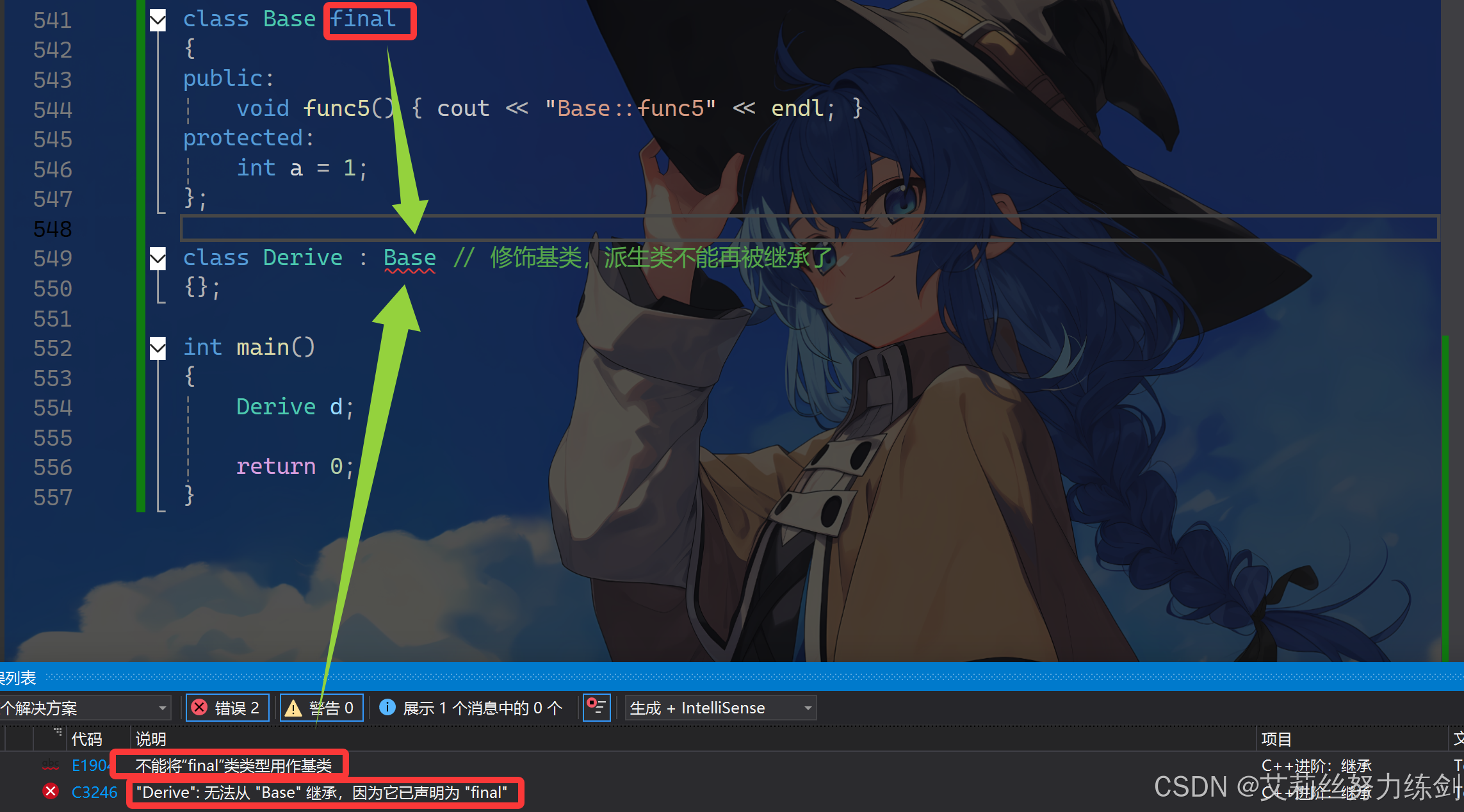在本文博主不展开讲,下篇博客,博主会介绍C++进阶中又一个重要的模块------【多态】,在【多态】中,博主会介绍两个涉及到【多态】中的重写相关知识点的关键字:override和final。