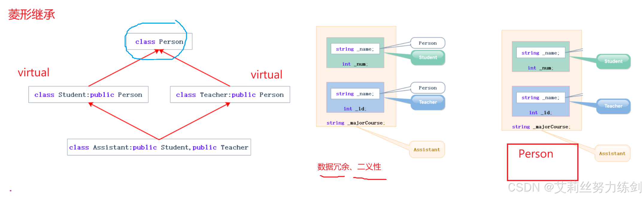 [7.2.2 菱形继承的数据冗余与二义性问题](#7.2.2 菱形继承的数据冗余与二义性问题)