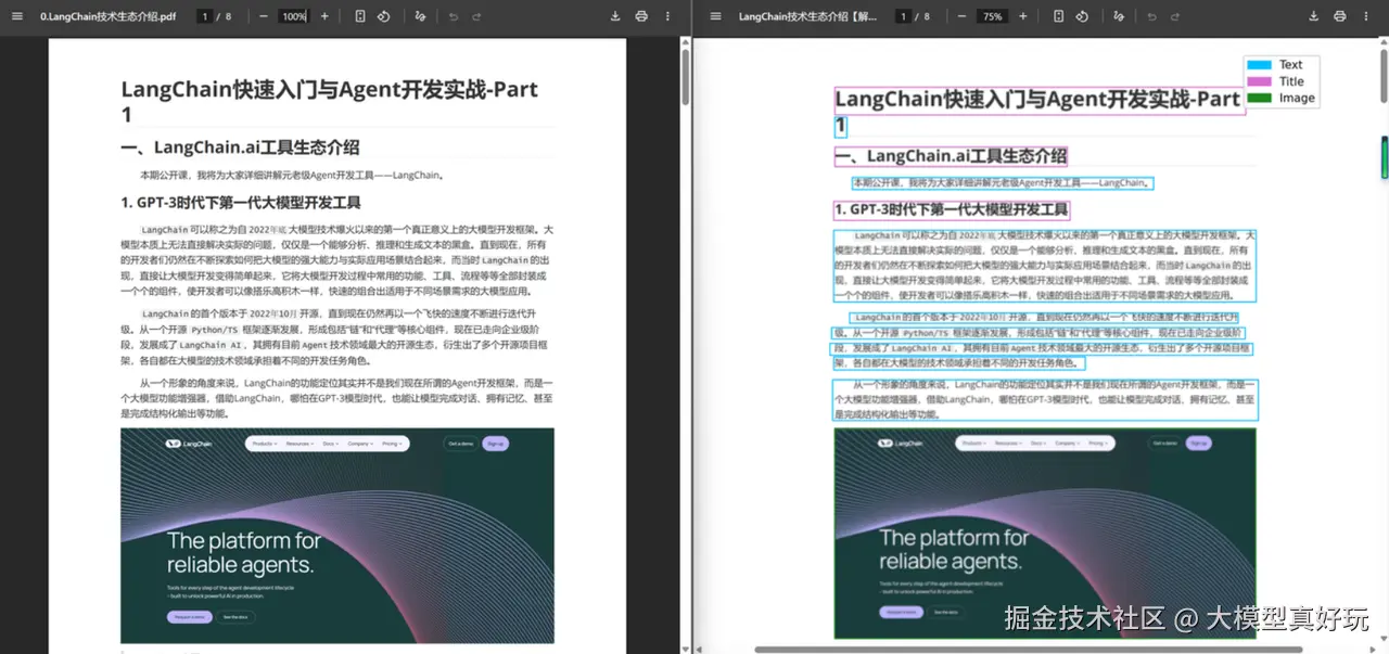 在DeepSeek-OCR发布之前,我们团队使用MinerU 处理固定版式报表也取得了不错的效果。MinerU并非单一框架,而是一个由阿里巴巴达摩院与OpenDataLab社区联合开源的工具集,支持灵活配置版面解析、结构化抽取和多模态VLM模型。它在处理学术论文、扫描件和复杂排版文档时表现突出,特别在公式、表格、图片引用等细节保留上效果优异,输出的Markdown文档能较好地还原原始语义。