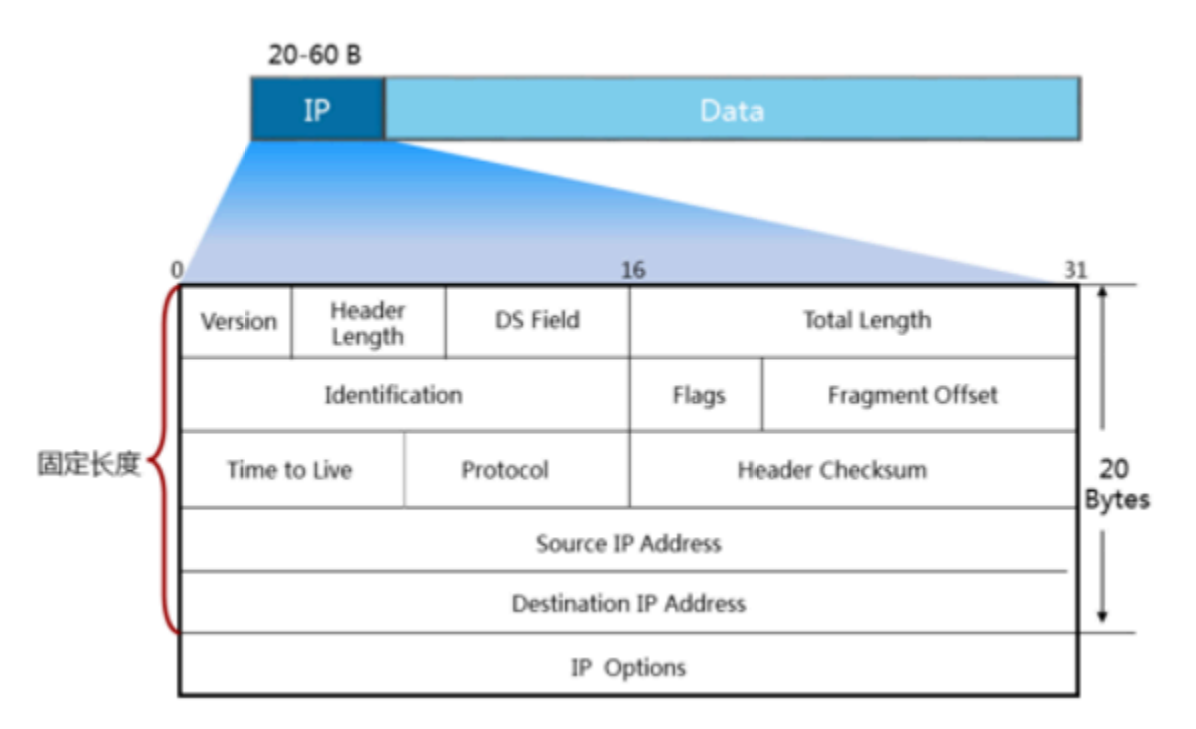 | Header Checksum | 16 bits | 首部校验和 。用于检查IP报文首部 在传输过程中是否出错。不校验数据部分,数据的可靠性由上层(如TCP)或应用保证。 |