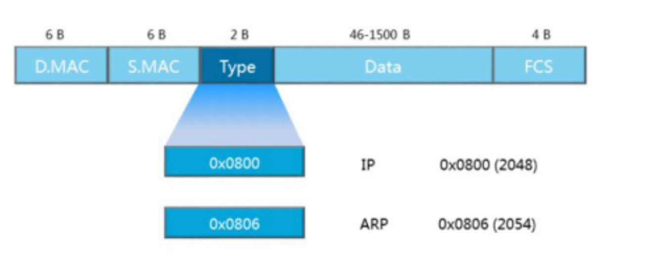 | 类型 | 2字节 | 一个至关重要的"标签" 。它告诉接收方,数据部分封装的是什么协议的数据。 |