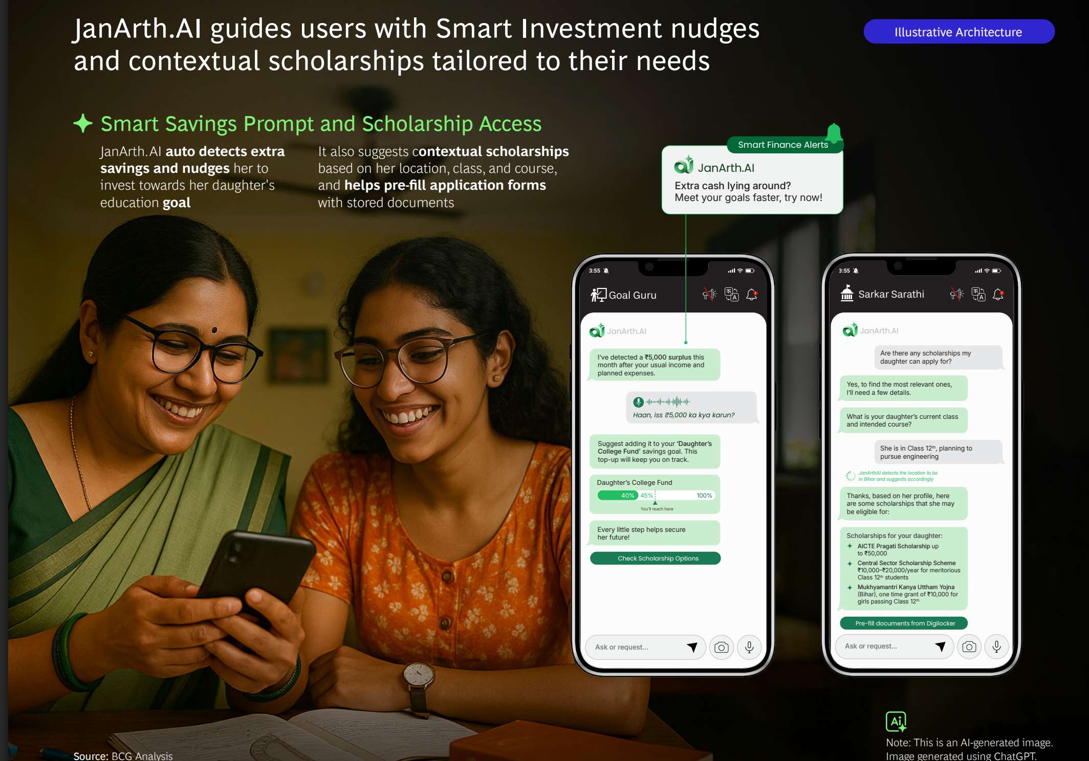 过去五年,全球 AI 投资已超1.3万亿美元 ,采用速度前所未有。但 AI 的真正价值,不在于技术炫技,而在于它如何改变日常生活。想象一位三线城市的裁缝萨维塔,或一家小杂货店主拉朱------他们通过JanArth.AI (简易财富AI)和VyaparSaathi.AI (商业伙伴AI)这样的工具,就能轻松管理医疗、教育支出,或处理账目、现金流和税务申报。这些AI应用设计为手机优先、多语言支持,每月仅需150-250卢比 (约2美元),随着规模扩大和推理成本下降,3-4 年内可降至50卢比 。