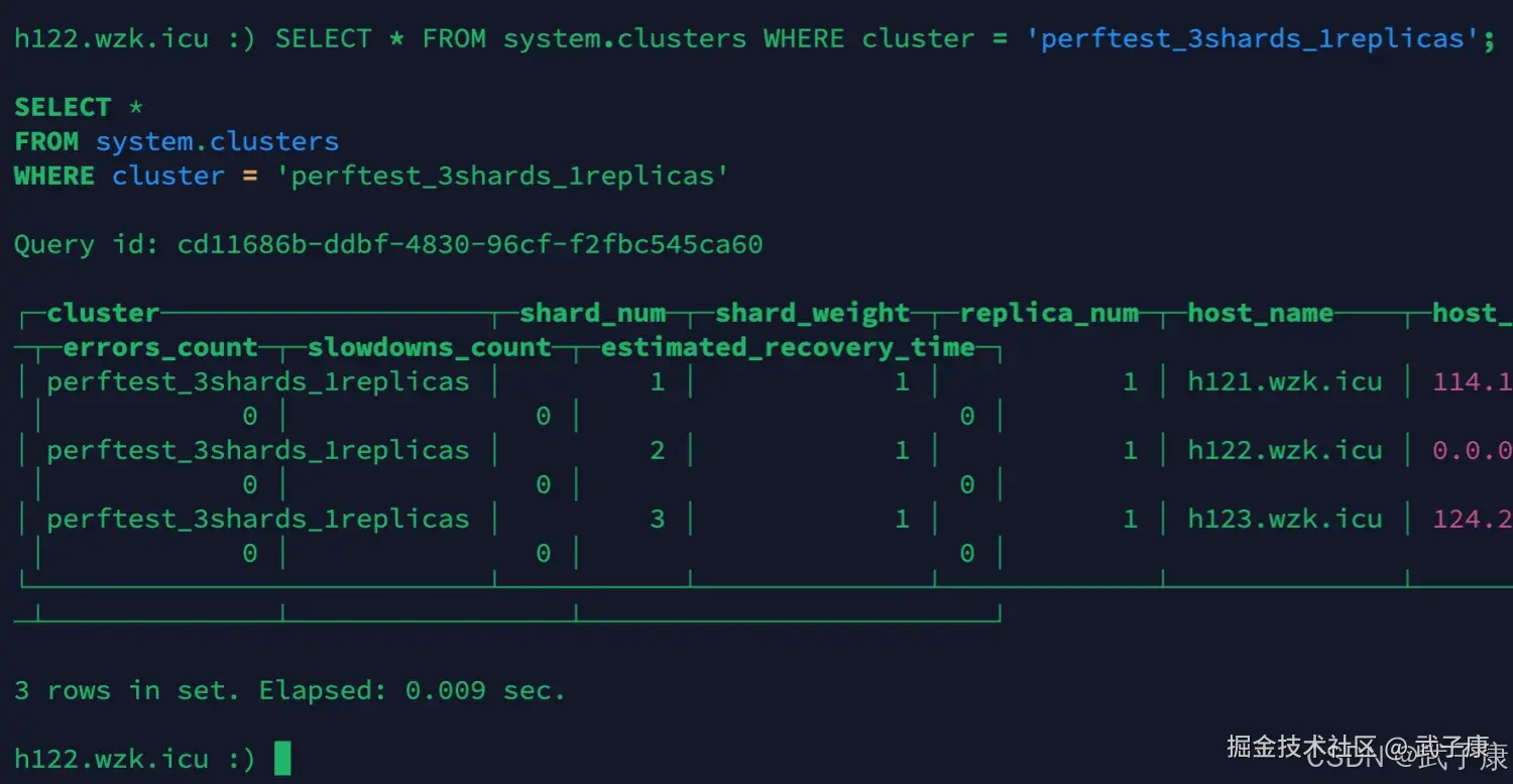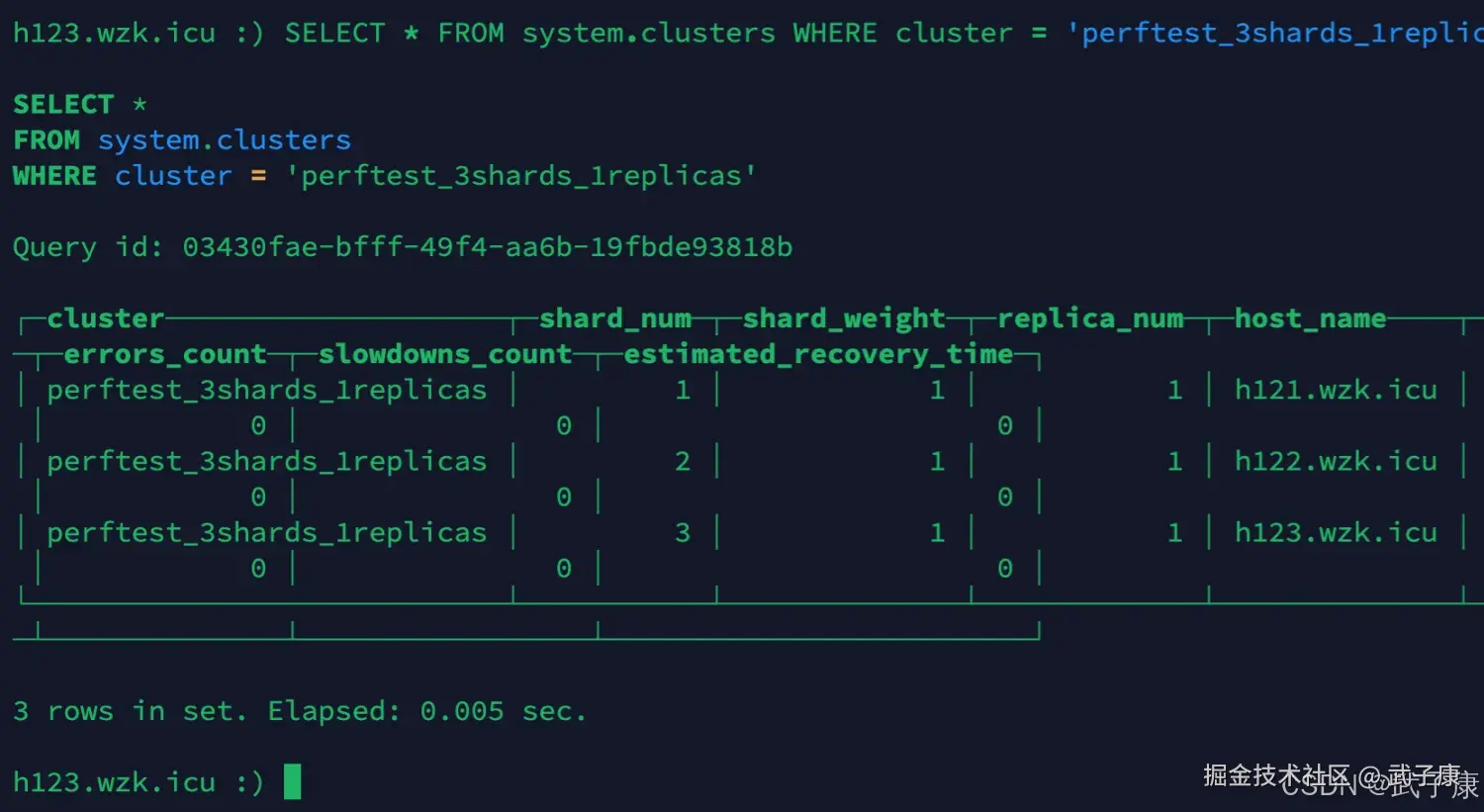 | 集群名 | perftest_3shards_1replicas | 与 config.xml 保持一致 |