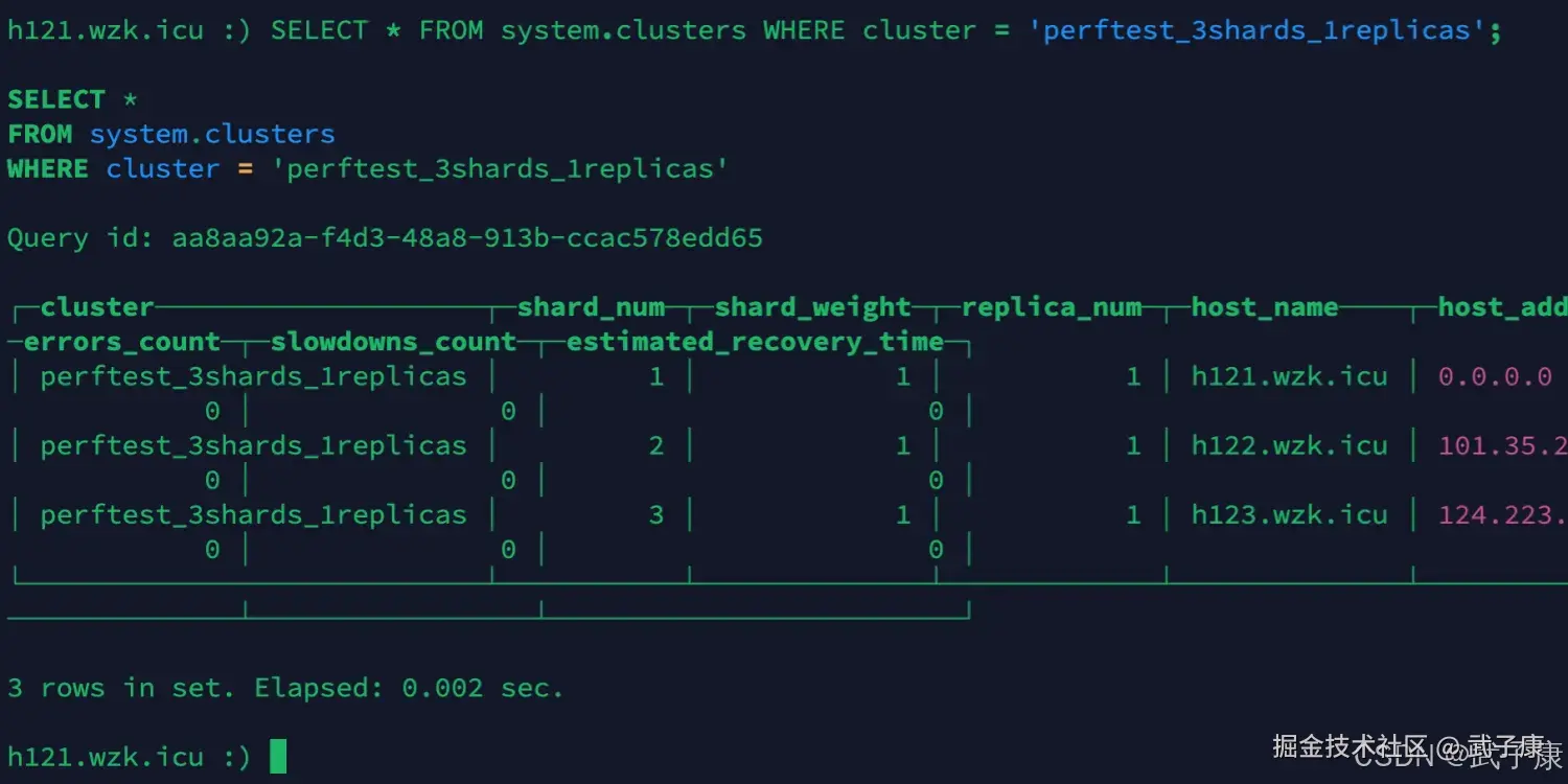 SELECT * FROM system.clusters WHERE cluster = 'perftest_3shards_1replicas';