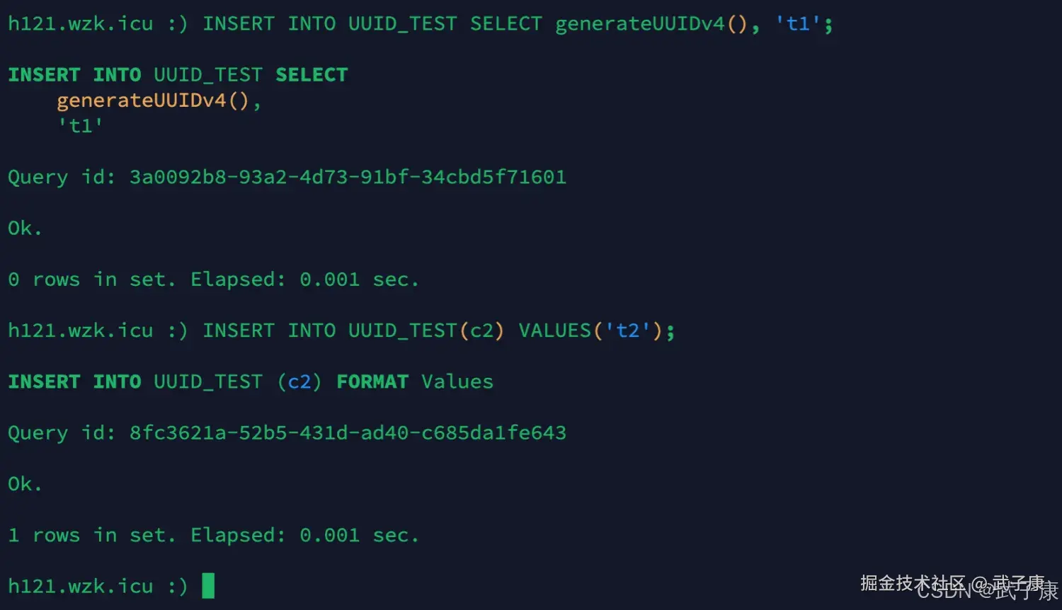INSERT INTO UUID_TEST SELECT generateUUIDv4(), 't1';