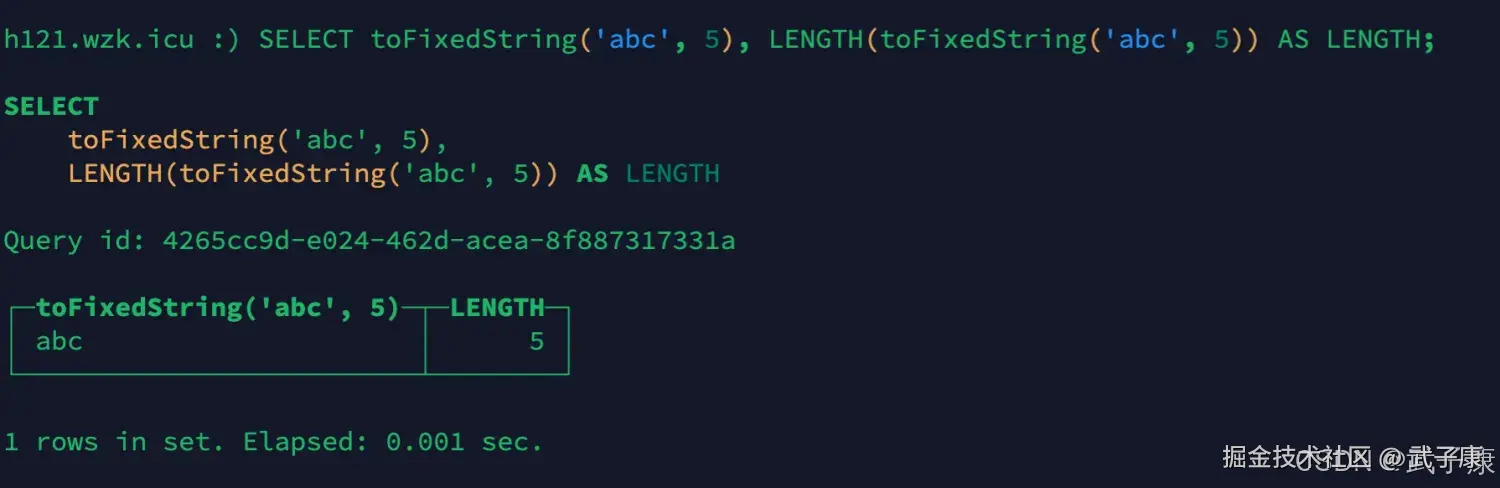 SELECT toFixedString('abc', 5), LENGTH(toFixedString('abc', 5)) AS LENGTH;