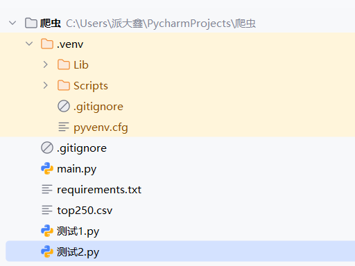 看一下我的目录结构 一般是不建议把.venv 一起推送上去的 因为有大量的配置文件