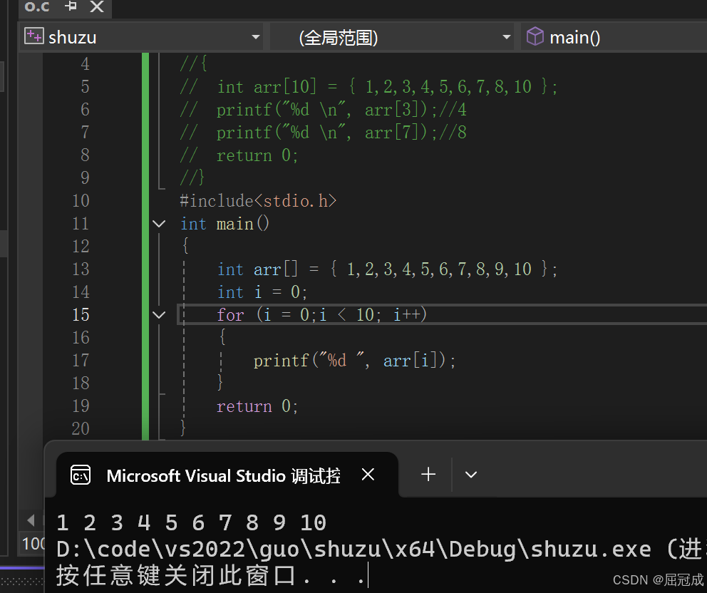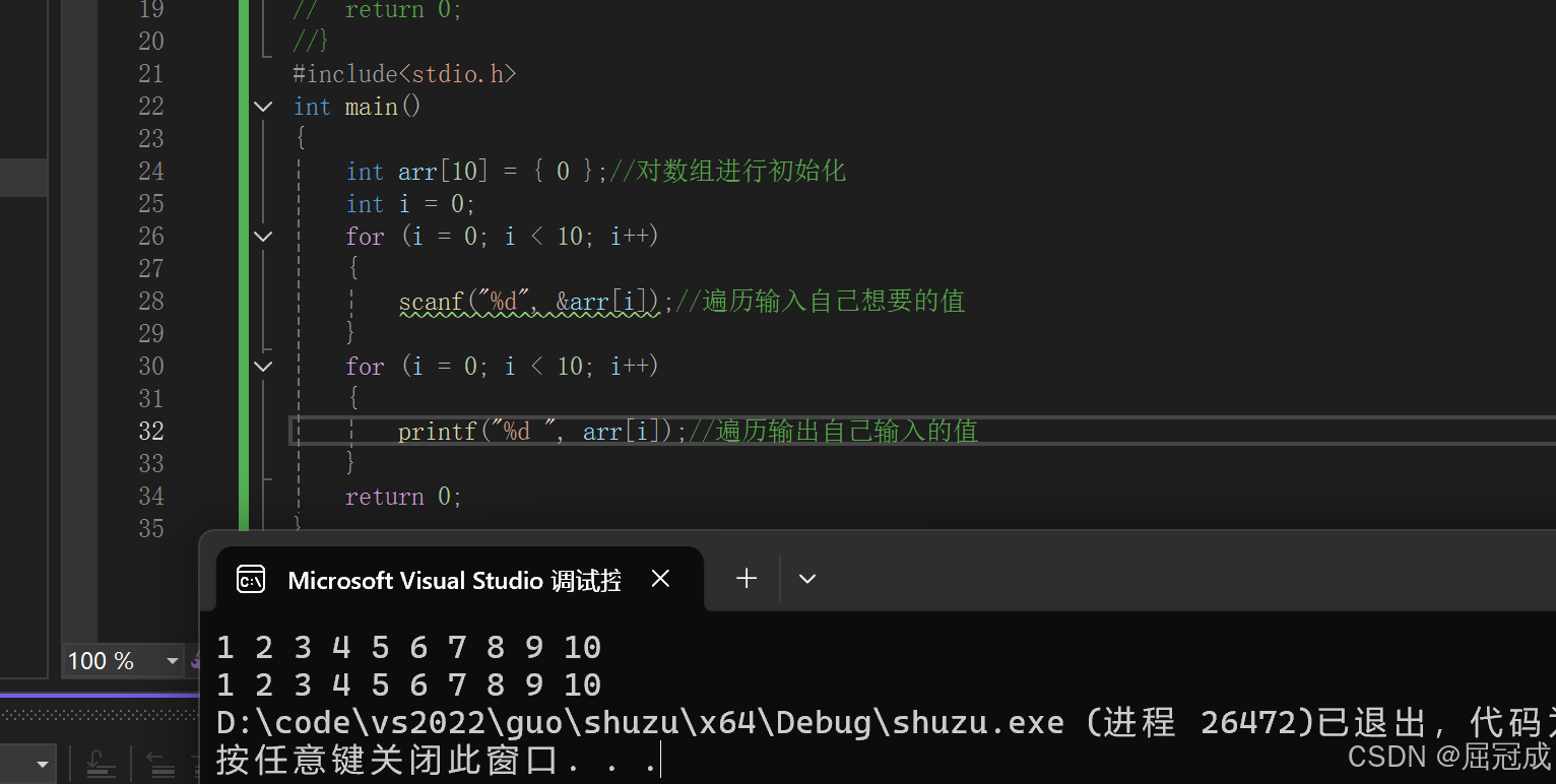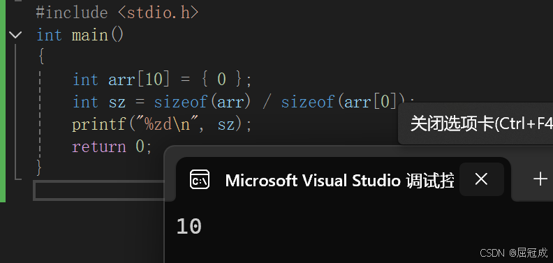 既然我们之前讲过循环了,那我们可以通过循环来产生0~9的下标来打印数组代码如下