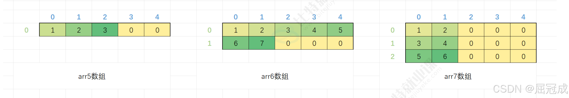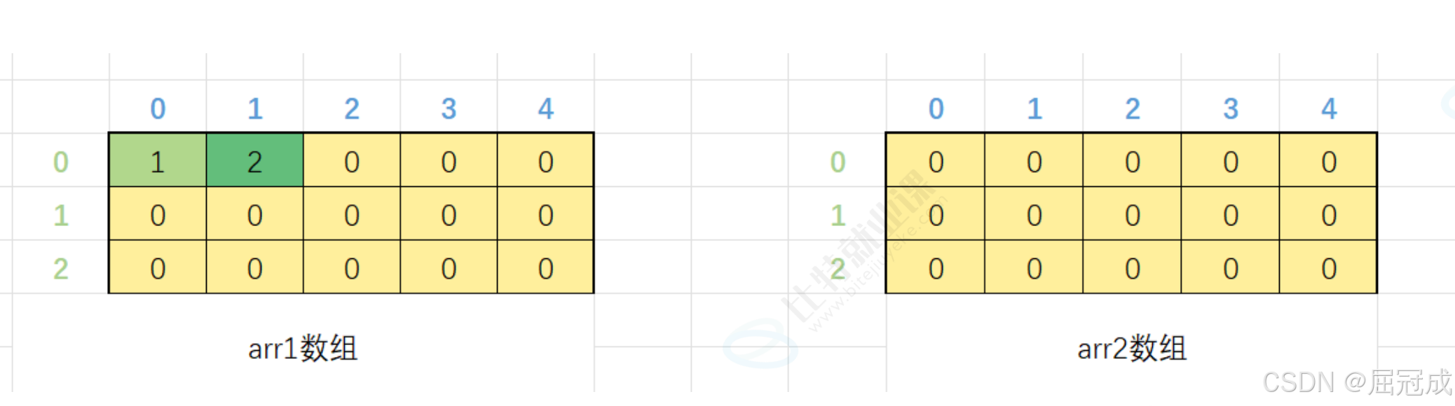 只要我们能够按照一定的规律产生所有的行和列的数字就行;以上一段的arr数组为例,行的范围0~2,列的范围是0-4,所以我们可以借助循环实现生成所有的下标。