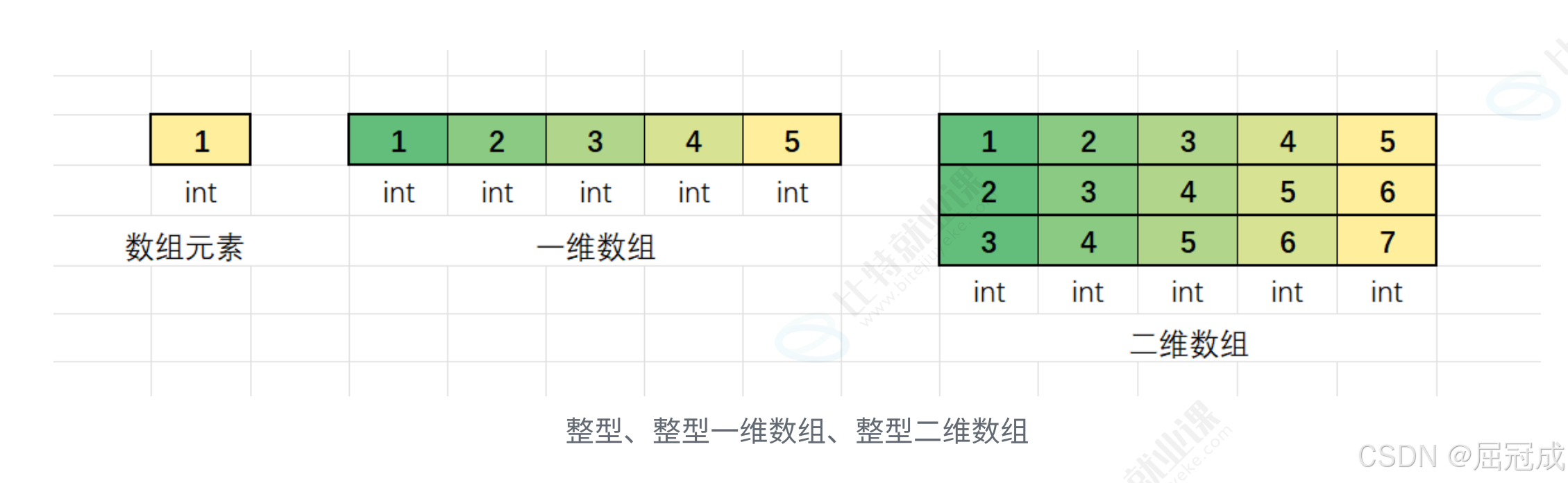 其中type指的是存放在数组中的类型。可以是char、int、float·、short等类型,也可以是自定义的类型。