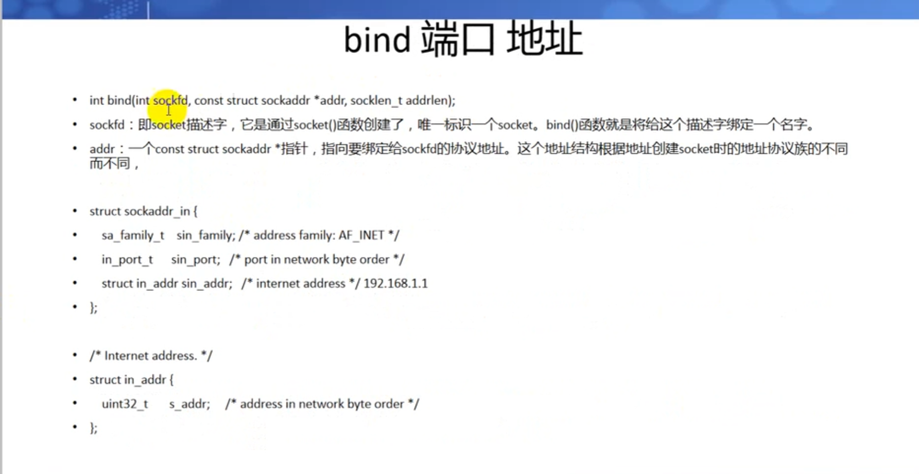 当你要发送数据给对方的时候不止要对方的端口号(sin_port),还要知道对方的地址(sin_addr)