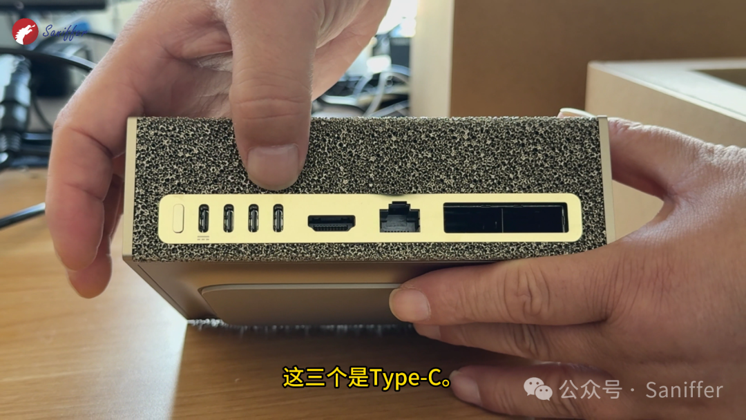 从视频展示可见,DGX Spark 的接口布局高度模块化,分布如下: