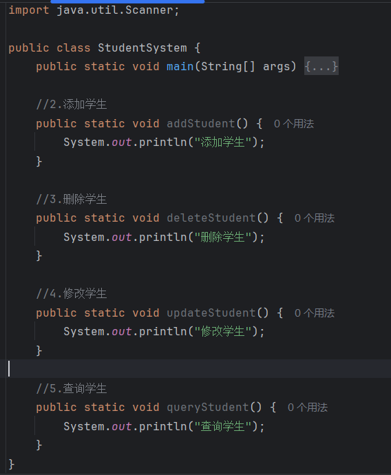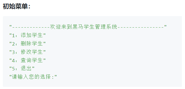 首先我们要初始化一个菜单,然后创建一个学生类,接着就是系统的四大功能