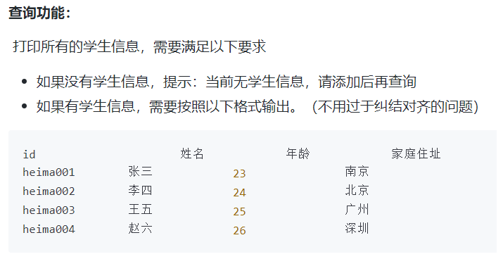 System.out.println("id\t\t姓名\t\t年龄\t\t地址");