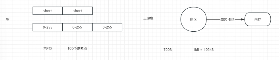 short类型通常占用 2 字节,两个short共 4 字节,此处可能是在对比不同数据结构的字节消耗,比如下方的 "100 个像素点" 结构(三个 0-255 的区间,每个区间可表示 1 字节,共 3 字节),用于说明不同数据组织方式的存储差异。 - 像素点与颜色:"三颜色" 标注与三个 0-255 的区间,对应 RGB 颜色模型,每个颜色通道(红、绿、蓝)用 0-255 的数值表示,组合起来可呈现千万种颜色,这里用于解释像素点的颜色存储原理。