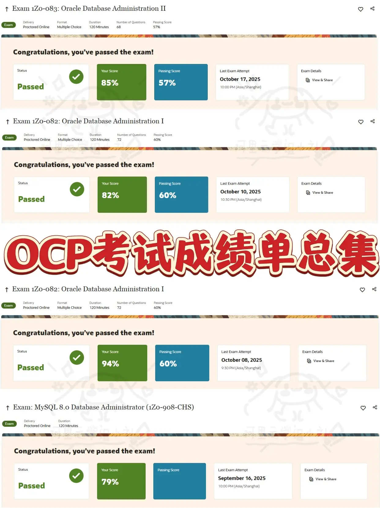 MySQL OCP:互联网行业更认这个,比如面试中小厂MySQL DBA,有证能证明你不是只会基础操作,应届生/转行党有证能弥补经验不足
