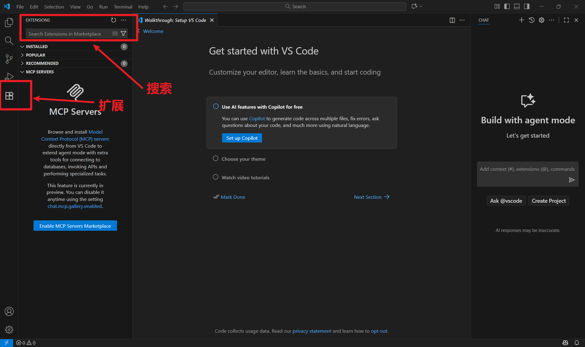 VsCode也是由微软打造的一款代码编辑器,有丰富的生态。对于Rust来说,VsCode + 插件的组合开发体验极好。当然你也可以尝试使用例如RustRover这样的集成IDE,这会需要更多的空间占用。