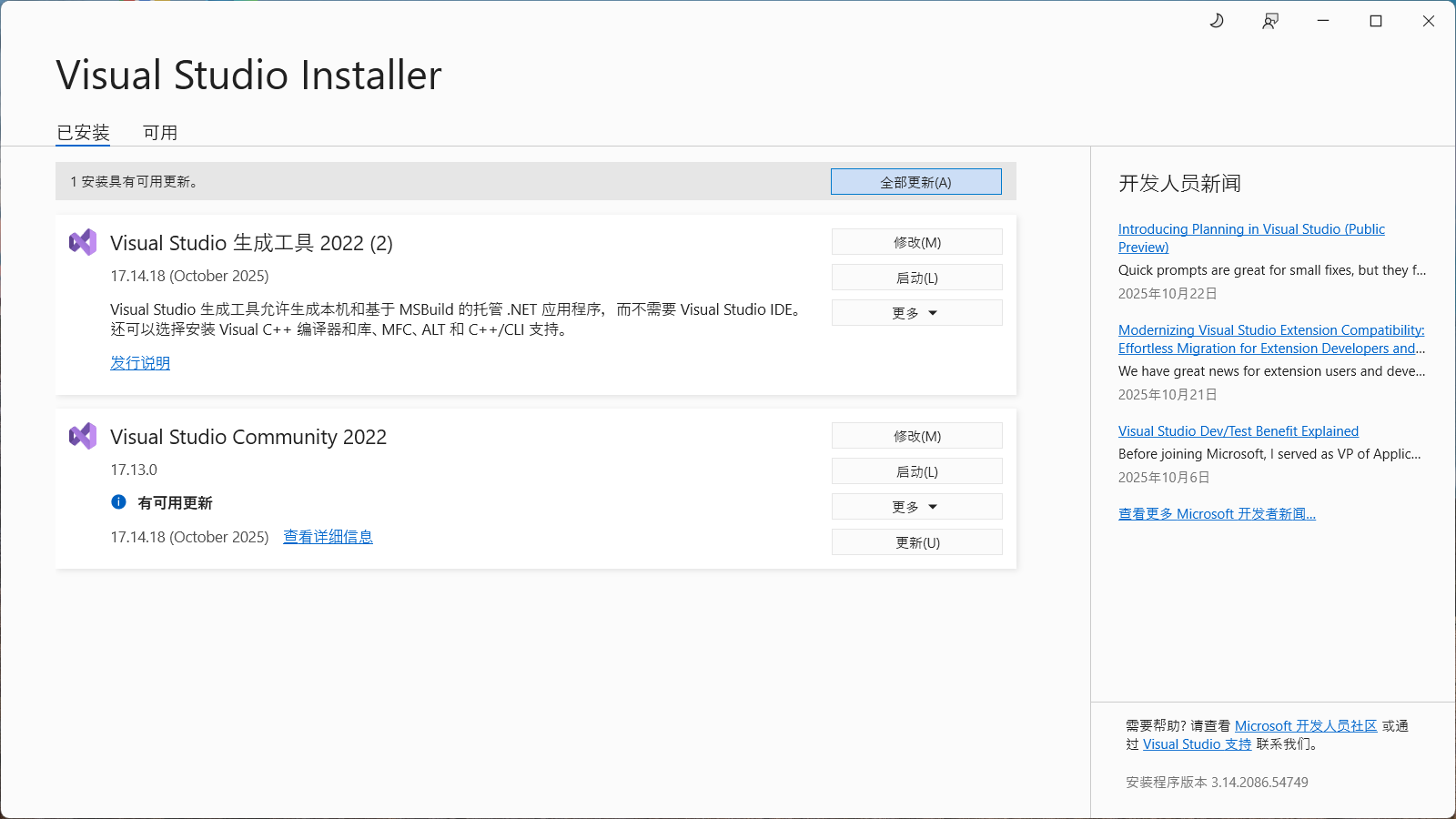 双击运行它,进入一个Visual Studio Installer页面,点击"继续",进入以下页面: