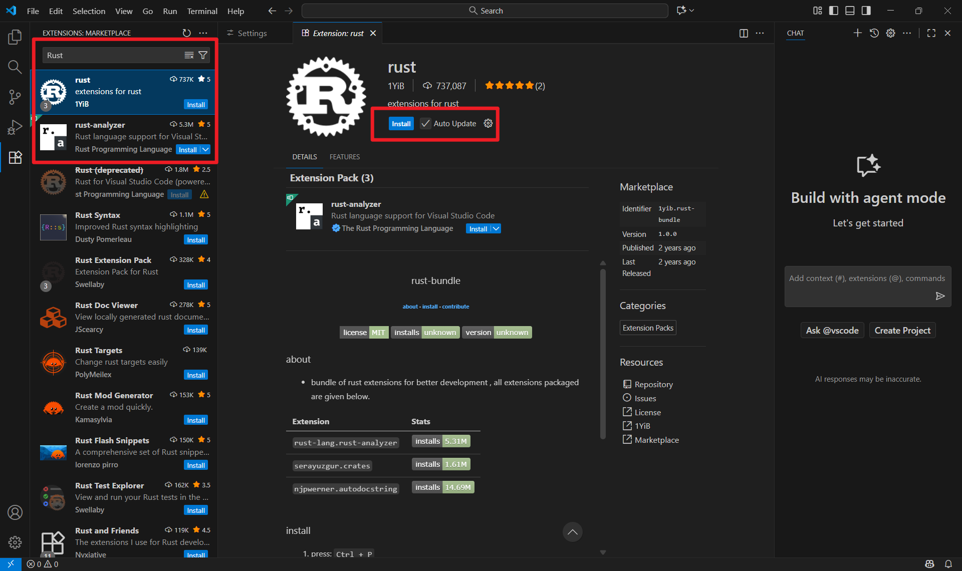 接下来安装一些扩展,用于提高Rust的编码体验。