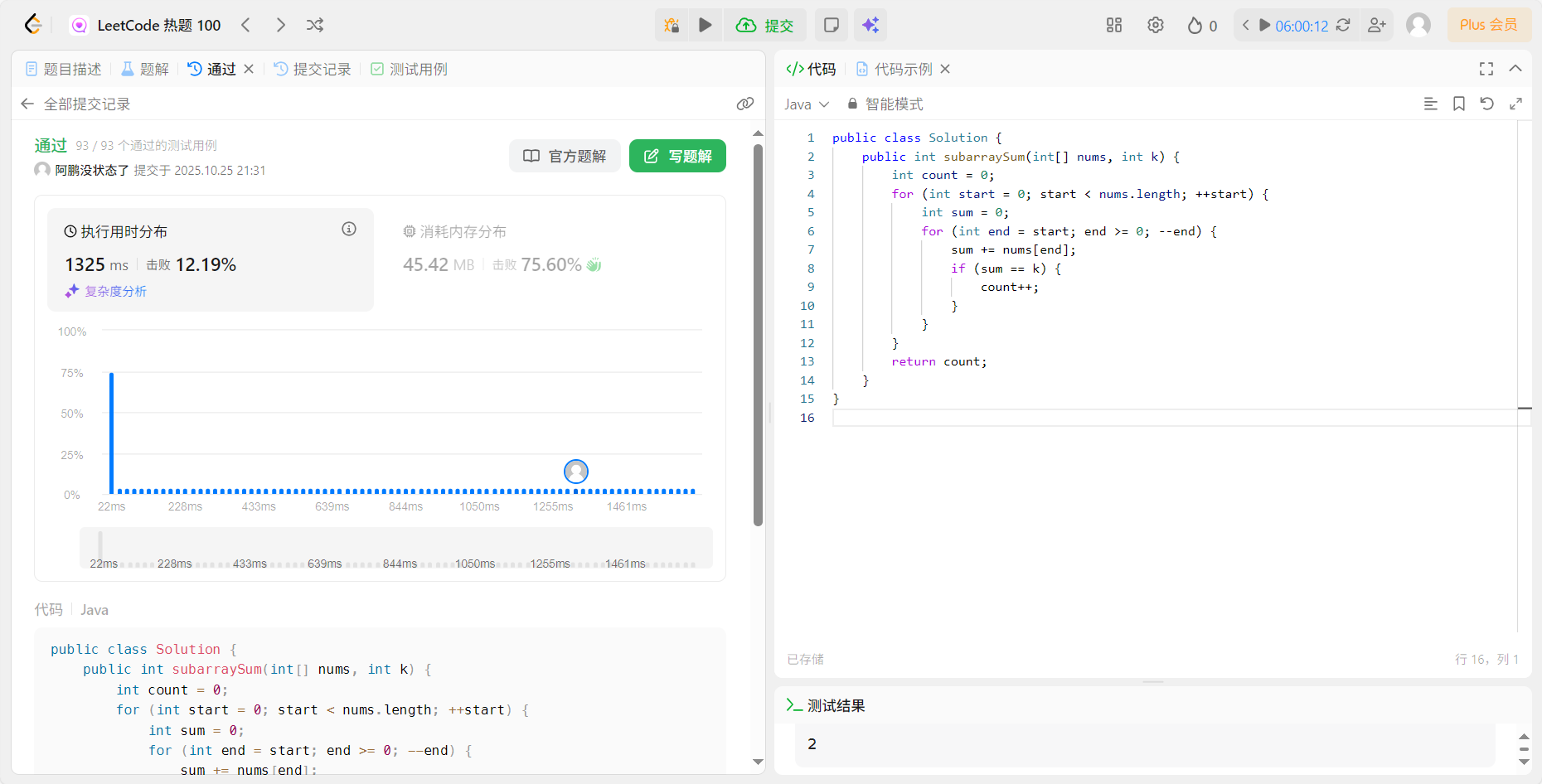 nums和一个整数k,请你统计并返回 该数组中和为k的子数组的个数。子数组是数组中元素的连续非空序列。