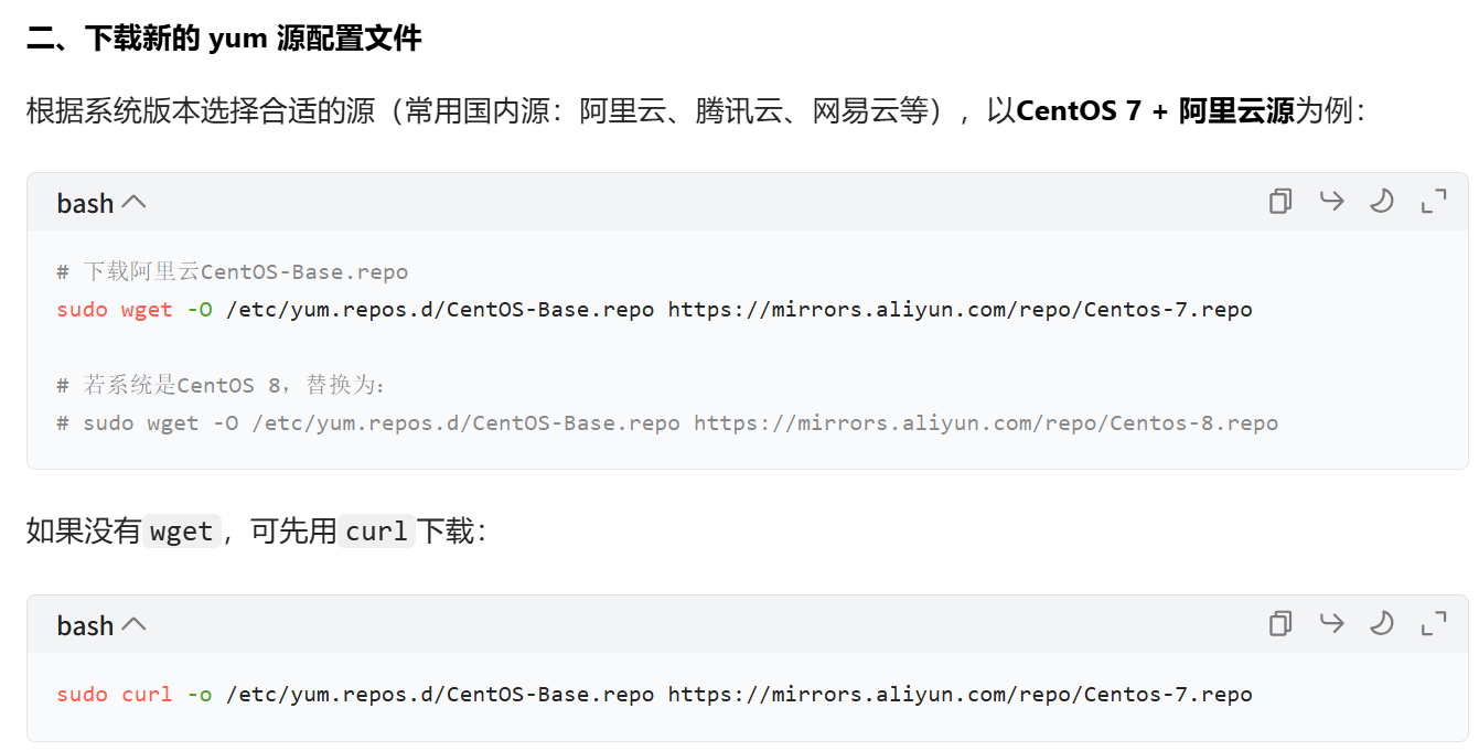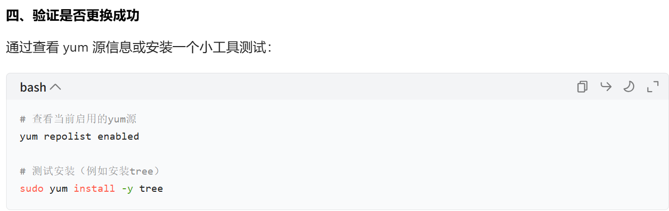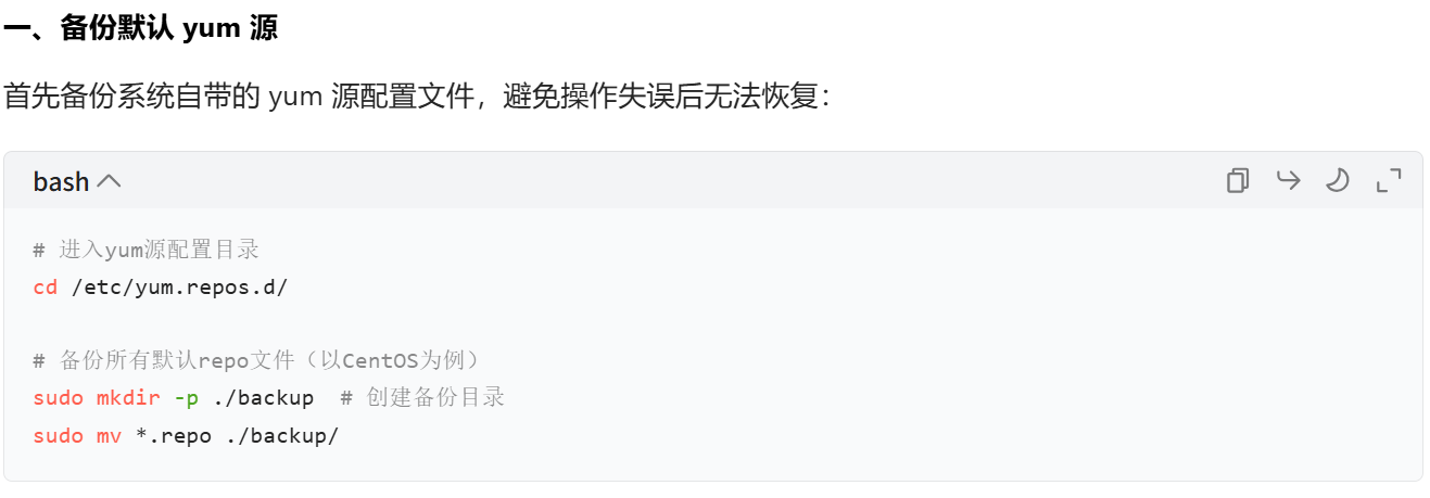 yum源怎么进行配置,我们这里不进行讲解(云服务器不用管,虚拟机要进行操作一下),我们可以使用AI大模型进行找寻答案,如下: