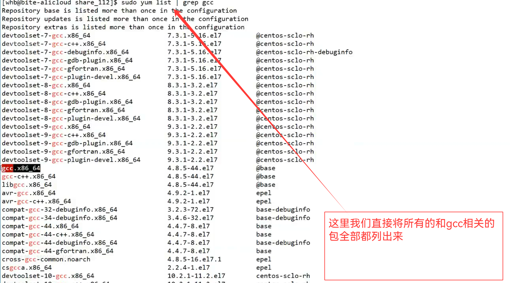 2.sudo yum list | grep gcc