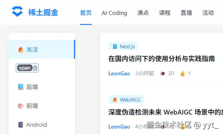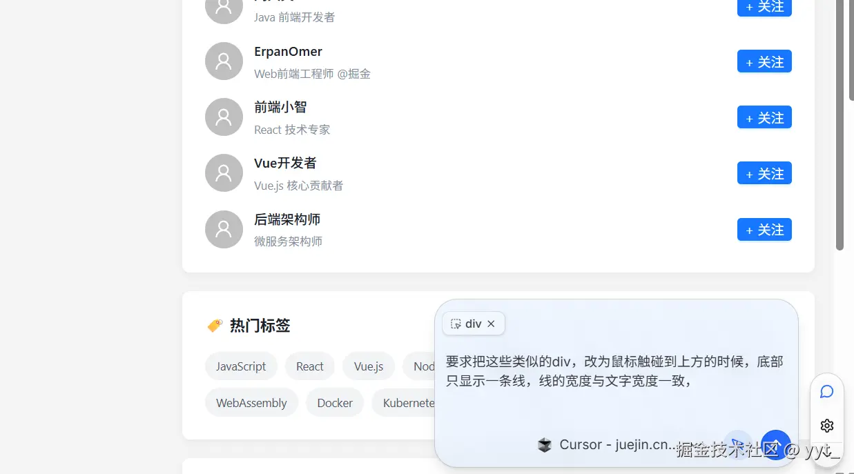 比如主播在用ai复刻掘金首页的时候,就出现了,鼠标触碰会显示两条斜杠