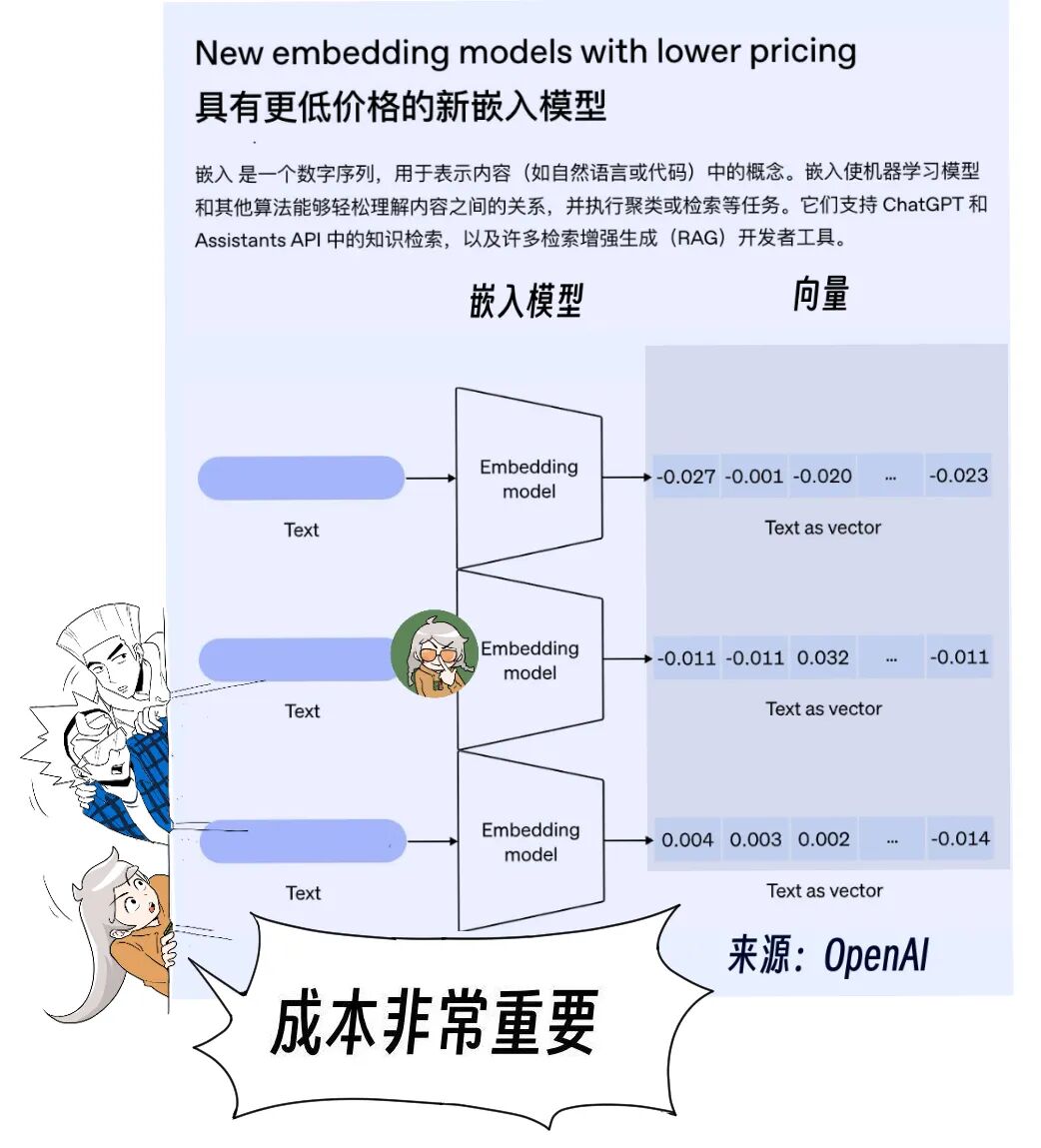 嵌入模型越大,成本越高,