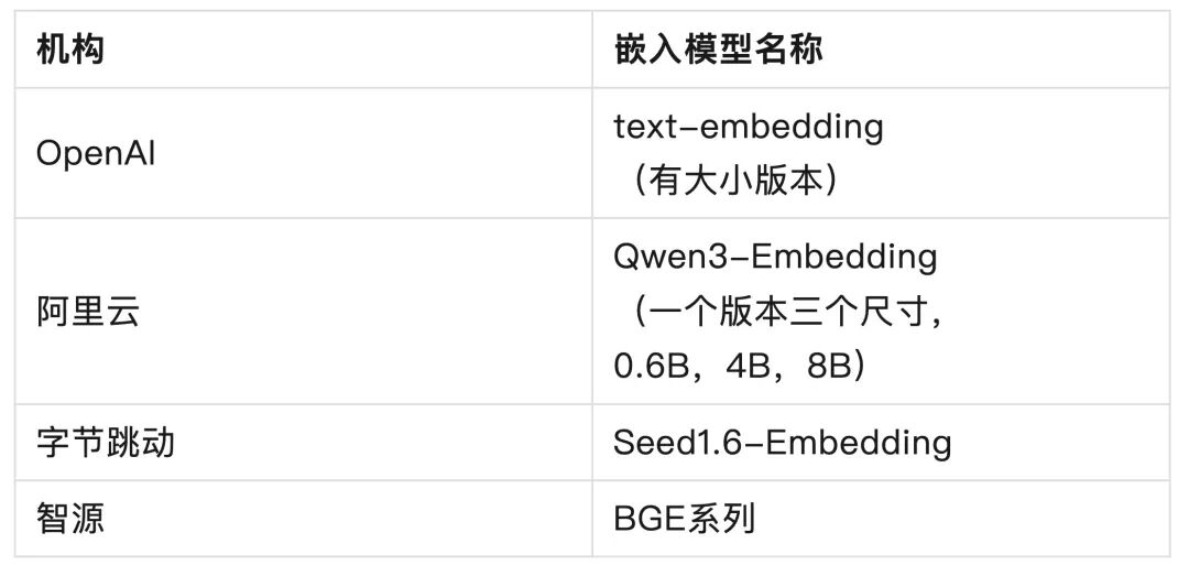 现在的嵌入模型市场很清晰地分成两种: