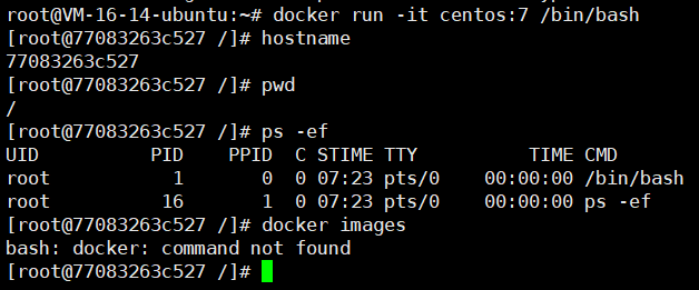 这样,我们就可以在容器内执行命令,并且只要我们不退出bash,容器就会一直运行。