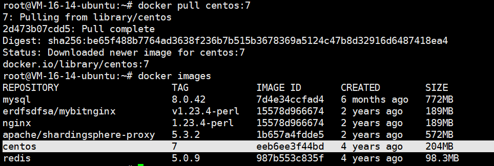 docker run centos:7 命令会从镜像仓库拉取centos:7镜像(如果本地没有的话),然后创建并启动一个容器。