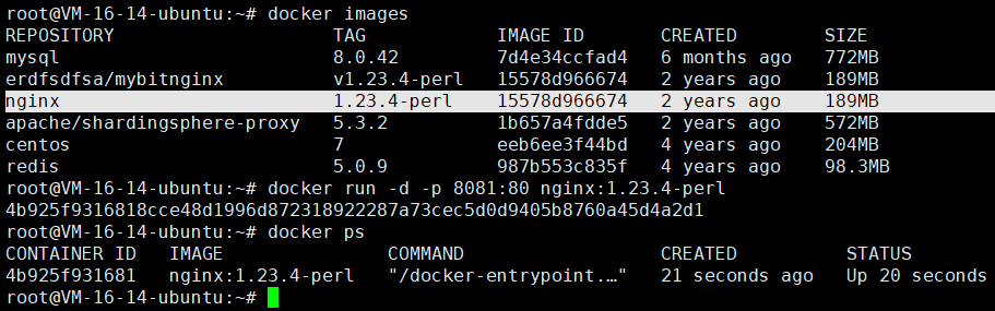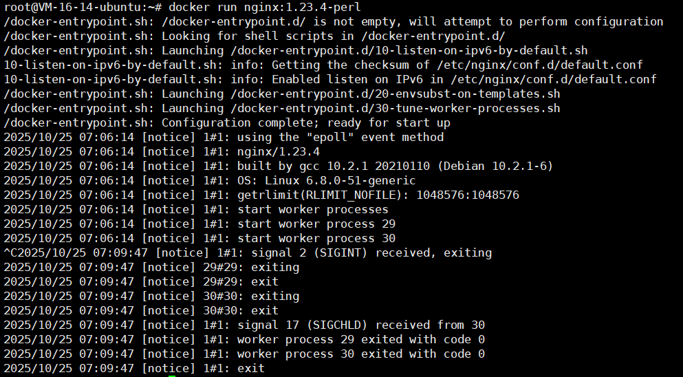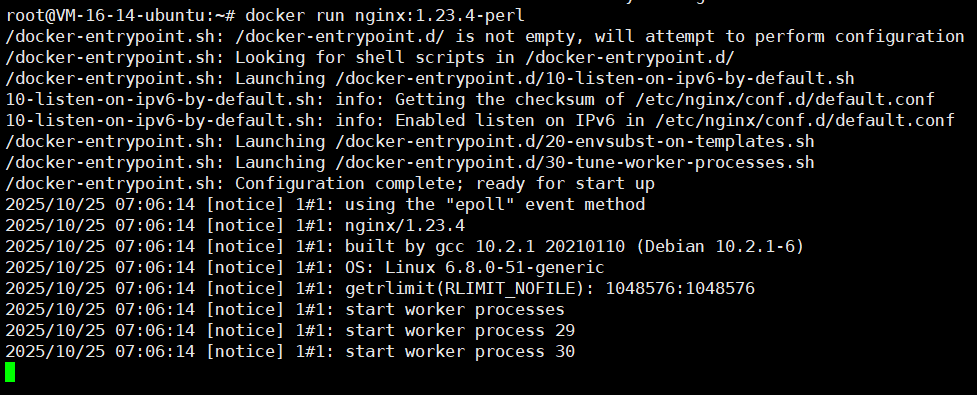 bashdocker run -it nginx:1.23.4-perl bash容器会: