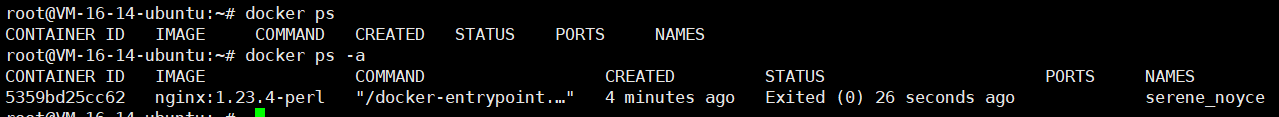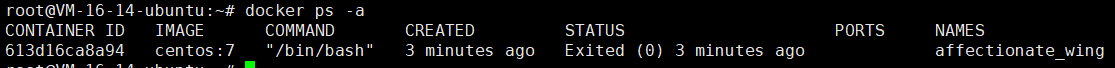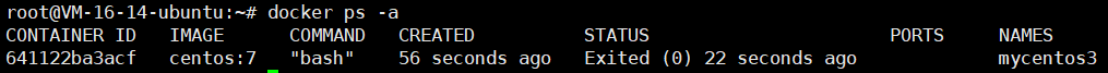 所以,这样运行后,使用docker ps看不到正在运行的容器,而使用docker ps -a可以看到一个已经退出的容器。