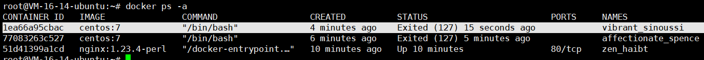 - docker ps -a:显示所有容器,包括正在运行的和已经停止的。