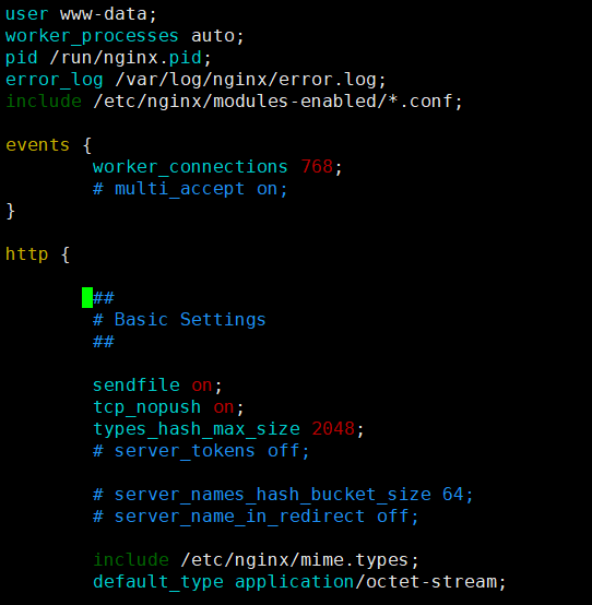 由于我们nginx是通过http协议来运行的,所以我们只看http部分。