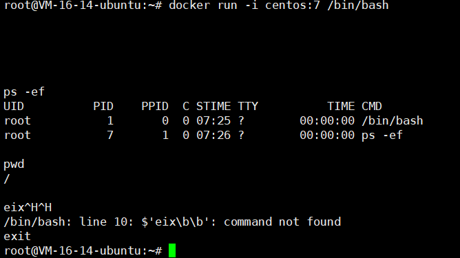 我们发现一运行就退出了。我们仔细观察下面这个命令