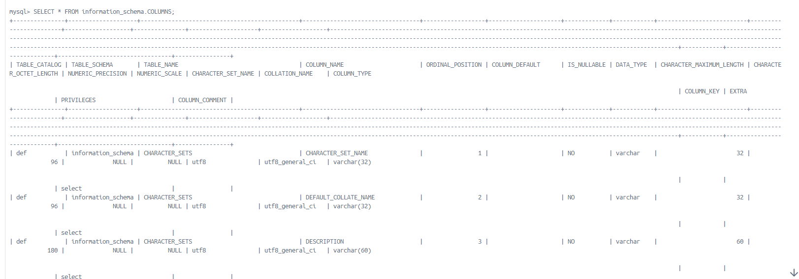 SELECT * FROM information_schema.COLUMNS;