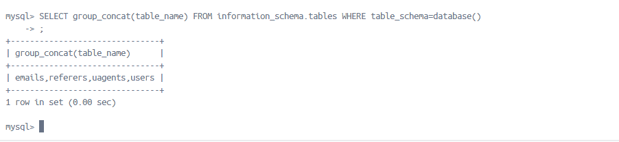 group_concat(table_name) -- 把所有表名合并成一个字符串