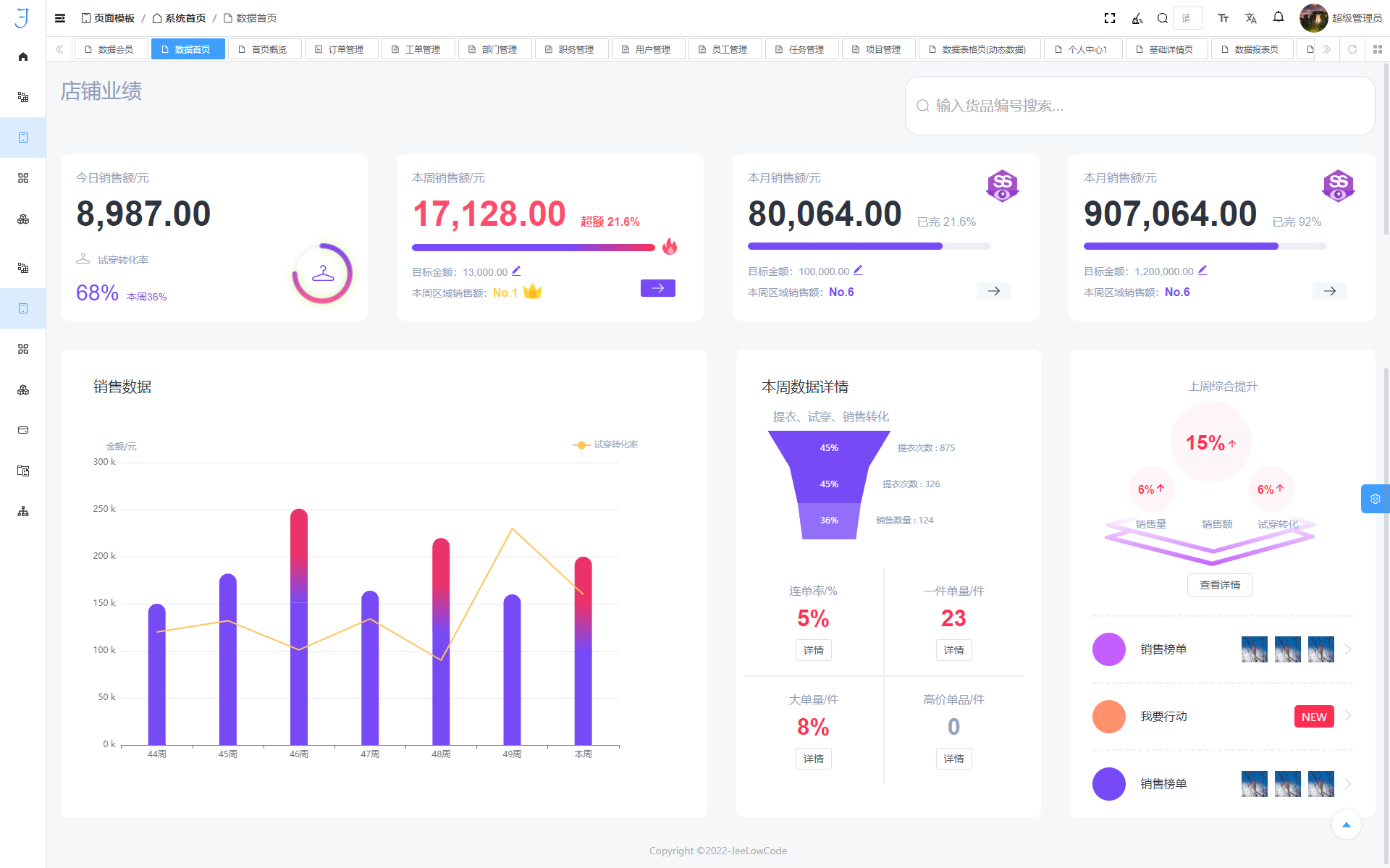 - 行业适配:涵盖金融、零售、医疗等多种业务场景,提供表单生成器、动态图表等标准化组件。