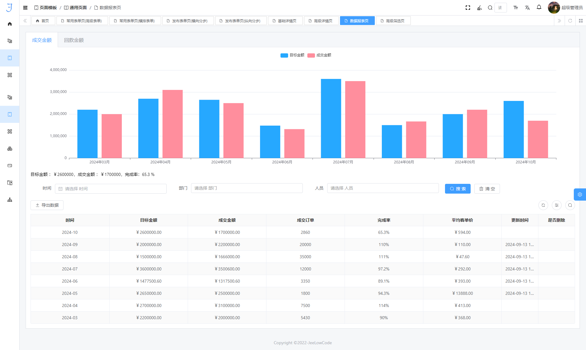 平台提供标准化图表组件库(柱状图、折线图、热力图等),支持图表类型动态调整和联动过滤: