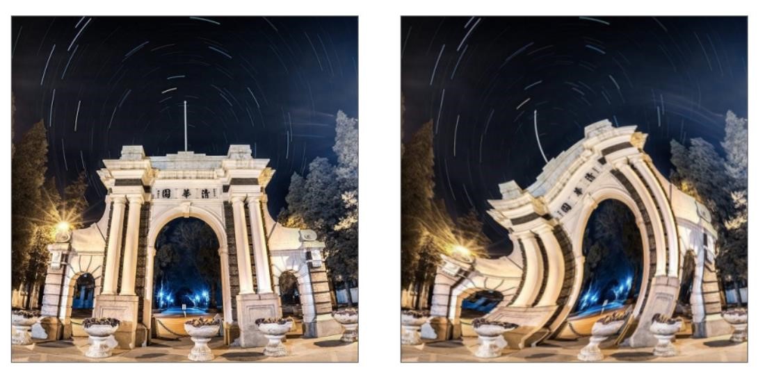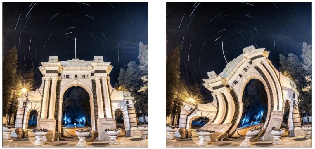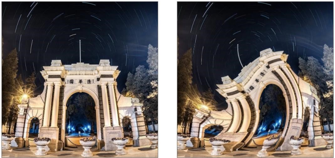 畸变扭曲是使图片拱起或凹陷,越靠近中间区域的部分变形程度越高,就像是将图片放在一个球的上表面或下表面再从球的正上方看下去。使图片拱起()