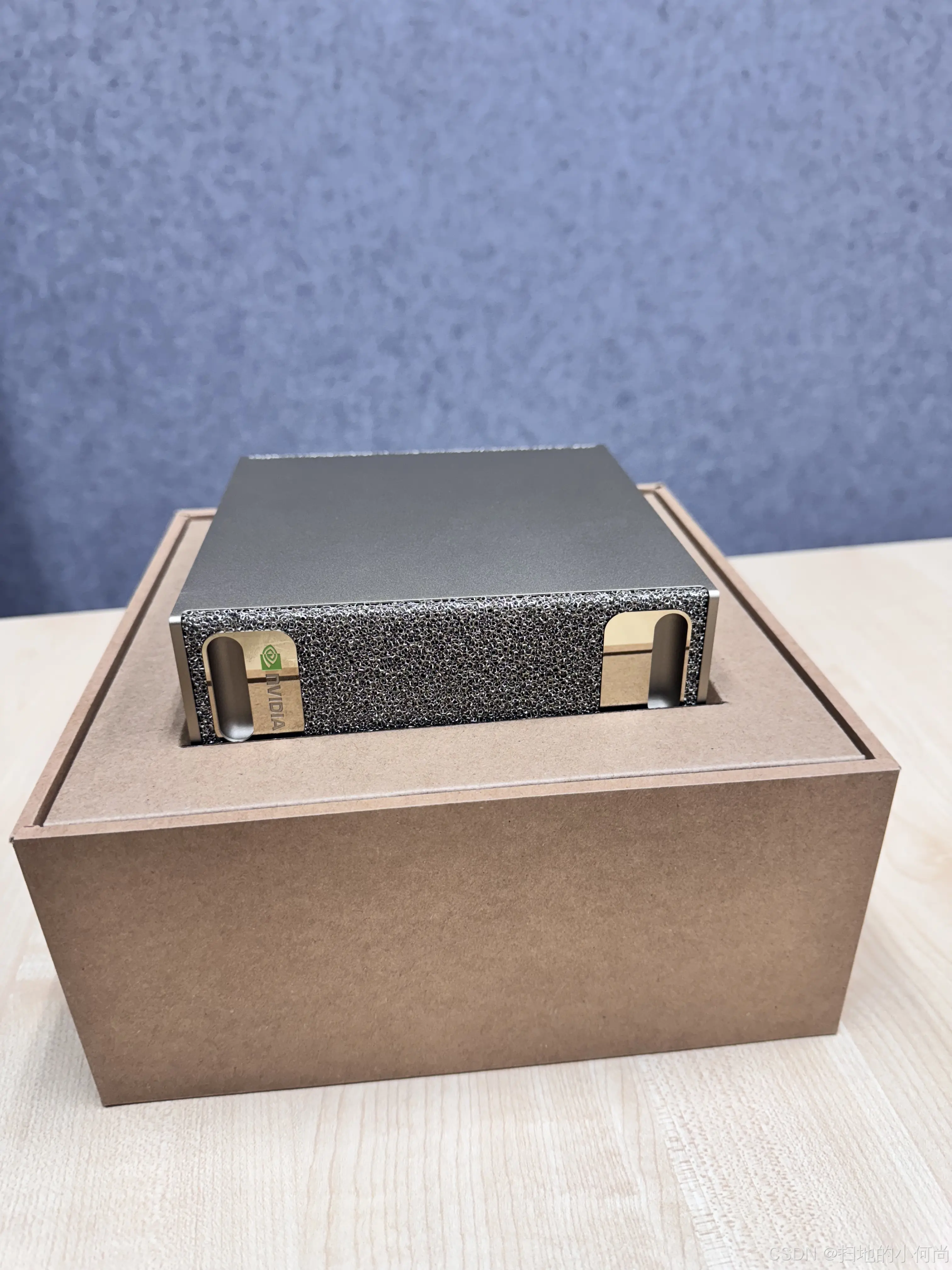 话不多说,让我们一同揭开这台未来机器的神秘面纱。DGX Spark的包装设计简约而环保,牛皮纸色的包装盒内,主角静静地躺在其中,等待着被唤醒。
