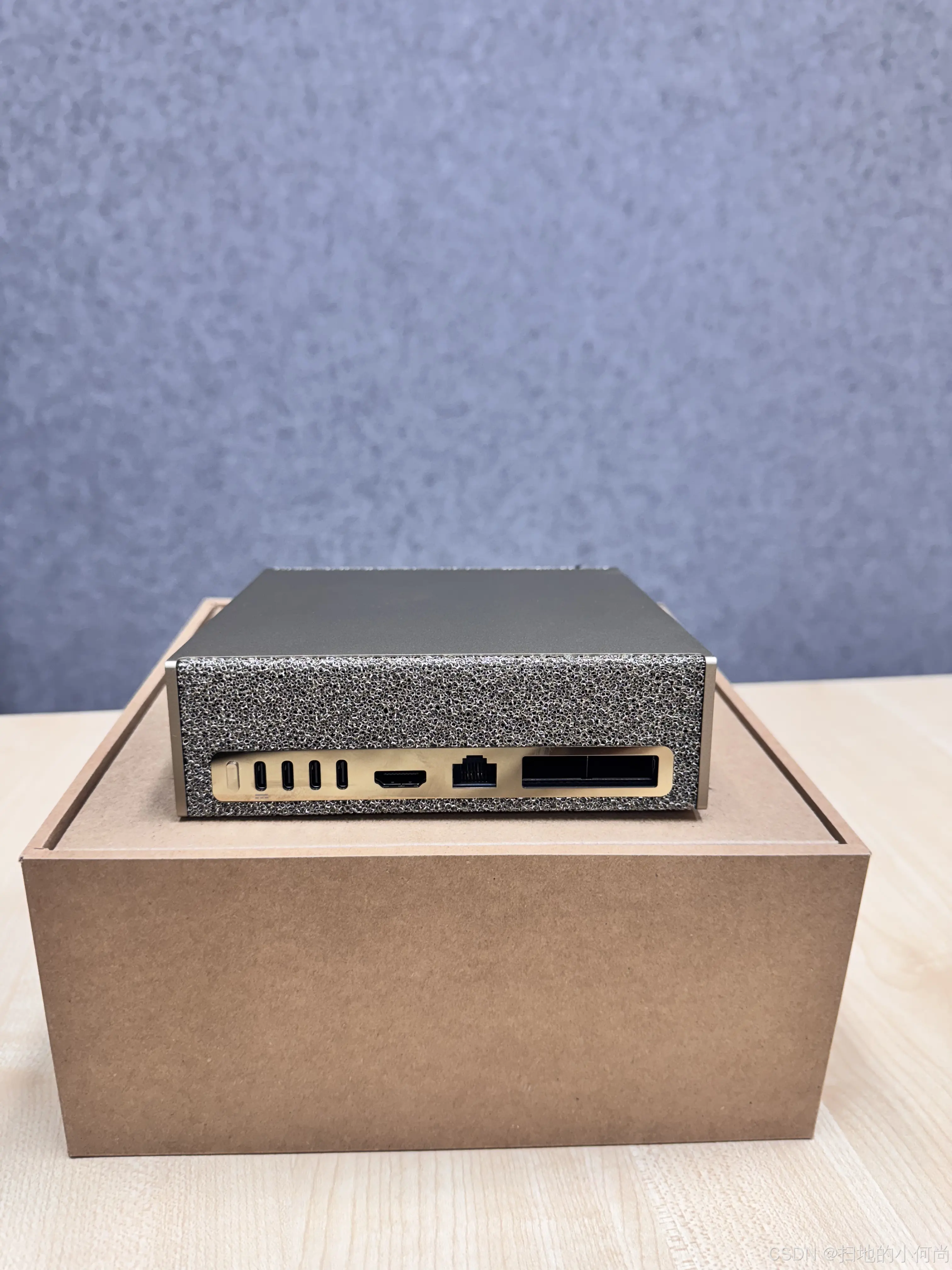 取出主机,第一感觉是其惊人的紧凑与精致。150mm x 150mm x 50.5mm的尺寸,仅1.2公斤的重量,很难想象这台小巧的设备蕴藏着如此巨大的能量。黑灰色的金属外壳,搭配前后两侧大面积的散热纹理,不仅彰显了其工业级的设计美学,也为其高效稳定的运行提供了保障。