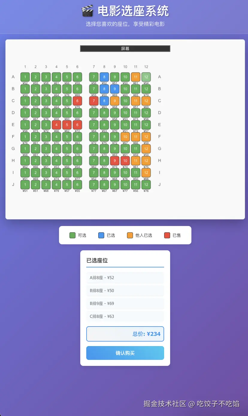 每个用户获得唯一标识符,确保座位选择的准确归属: